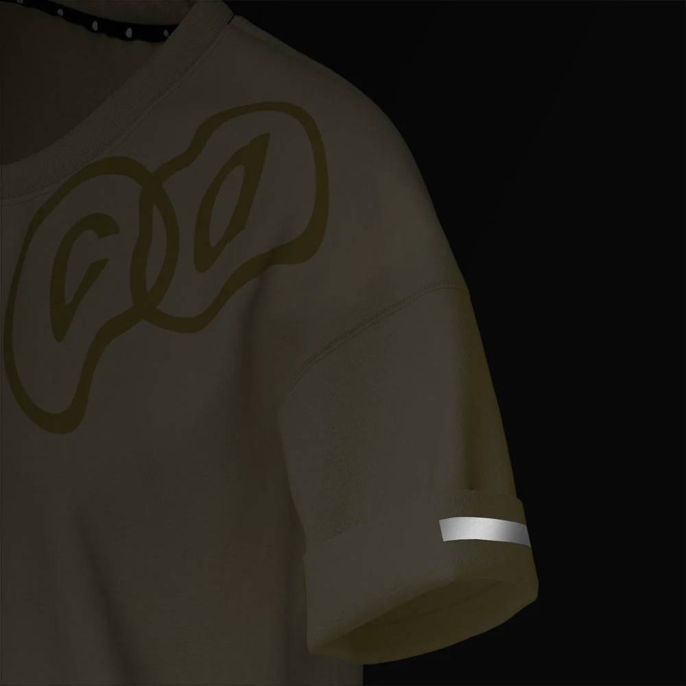 The comfort and cooling effect of GRS recycled cotton, in combination with GRS recycled polyester to bring you a moisture wicking, quick drying run ready t-shirt. we've added concealable reflective details, for that unplanned night run home, flatlock stitching for comfort, and an all natural antimicrobial to defend against unwanted odours and harmful microbes that plague your everyday activewear. the water based print is designed with breathability in mind, so it won't get wet and sticky and uncomfortable like most printed t's do during a run.