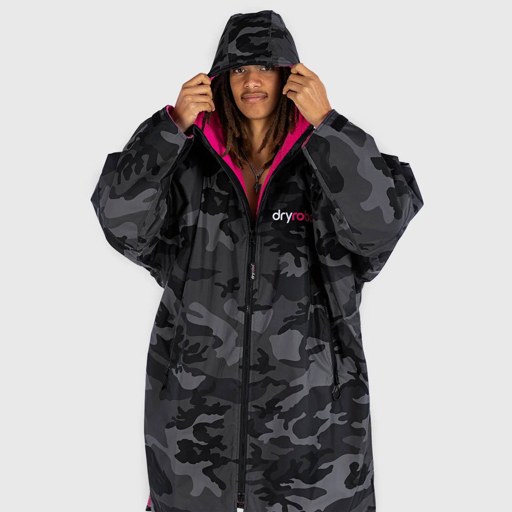 Dryrobe Advance Long Sleeve, Black Camo Pink