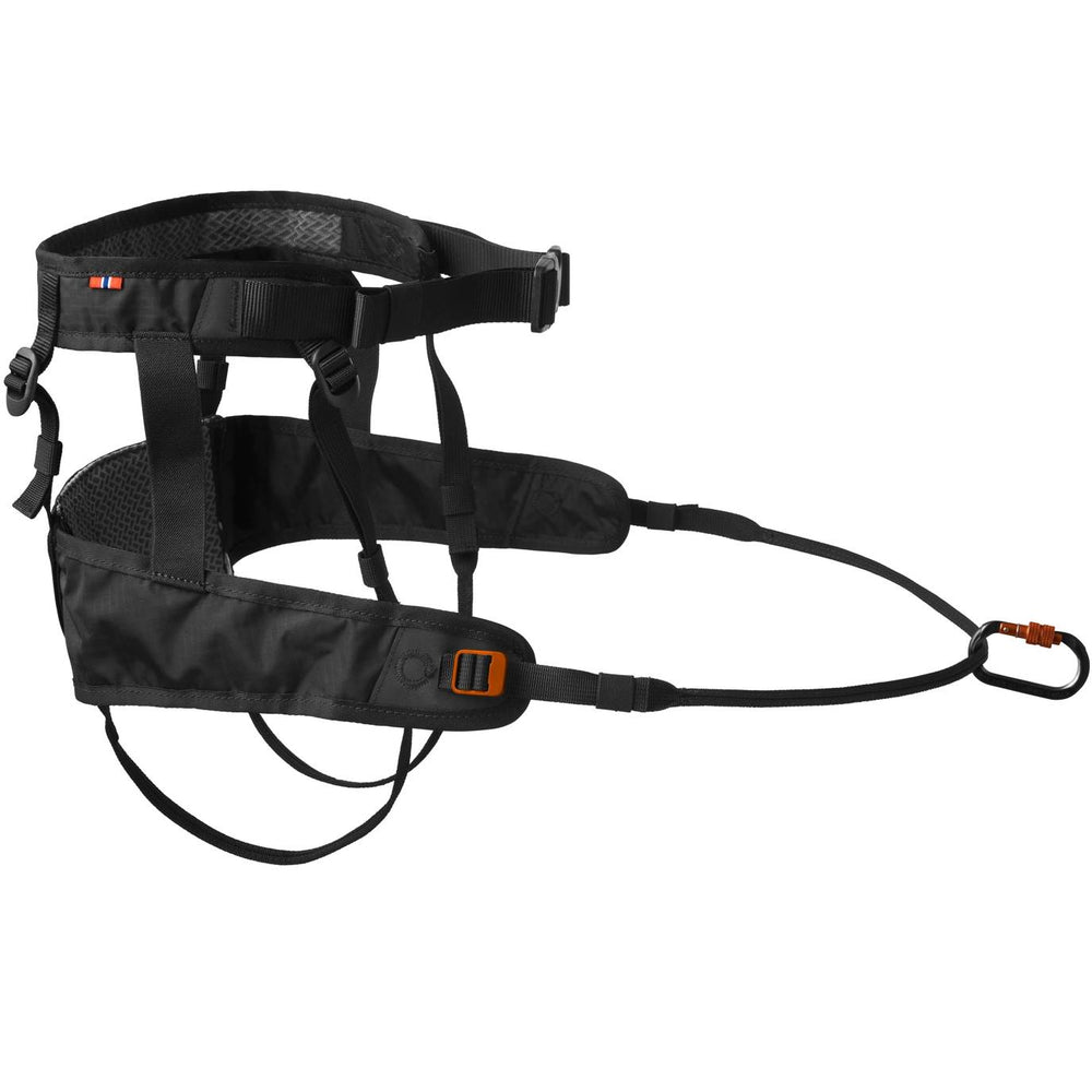 The CaniX belt 2.0 comes with a secure screw-lock carabiner as a standard attachment point for your dog's line. The carabiner moves on a loop in front and follows your dog's movement, providing equal pressure on your hips even if your dog is pulling off-center. With this setup it is easier to maintain balance and contact with your dog, even in turns.