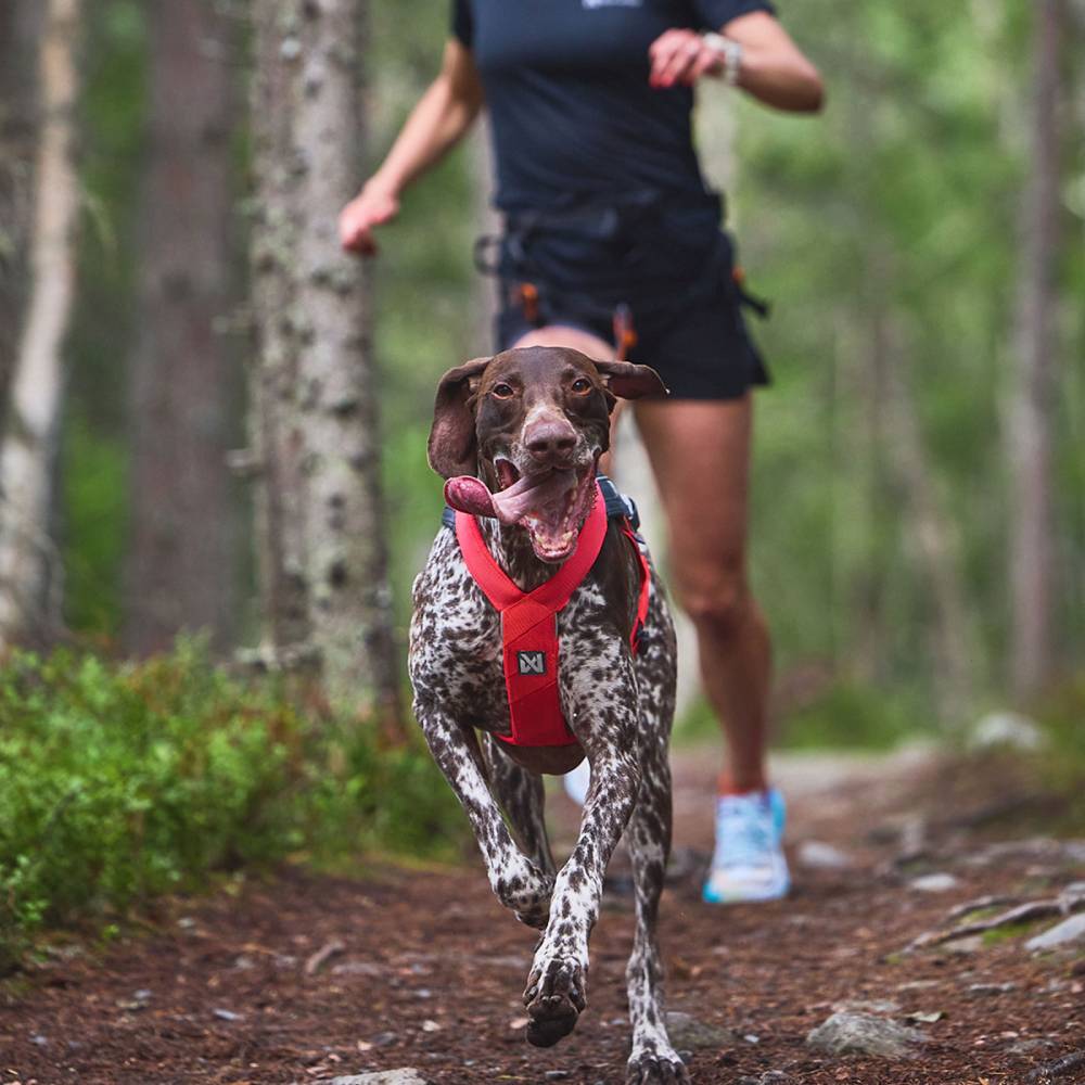 This upgraded version of the Freemotion harness is the result of years of experience and testing. The classic Y-shaped front allows free shoulder movement and minimal breathing constraints. The Freemotion harness 5.0 has a padded neck opening for optimum stability and support. This dog harness is specifically designed for activities with a high pulling point, such as running, biking or skiing. The pull force is evenly distributed over your dog’s body without putting pressure on their spine. When leaning into the harness, the power of each stride is utilized to the maximum, turning running together into a whole new experience for both you and your dog.
