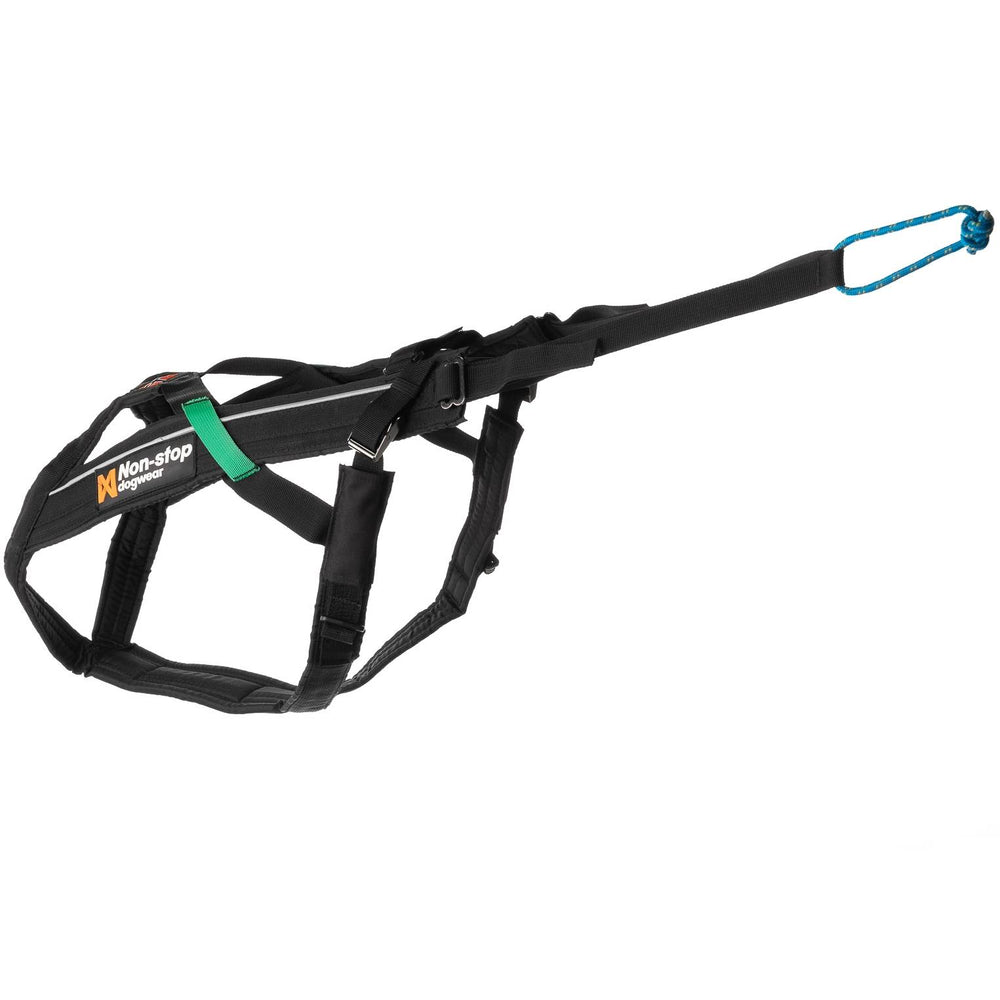 A versatile pulling-harness for running, biking, and other activities with a pulling center above the dog. Ergonomic fit provides freedom of motion and minimal breath constraint.