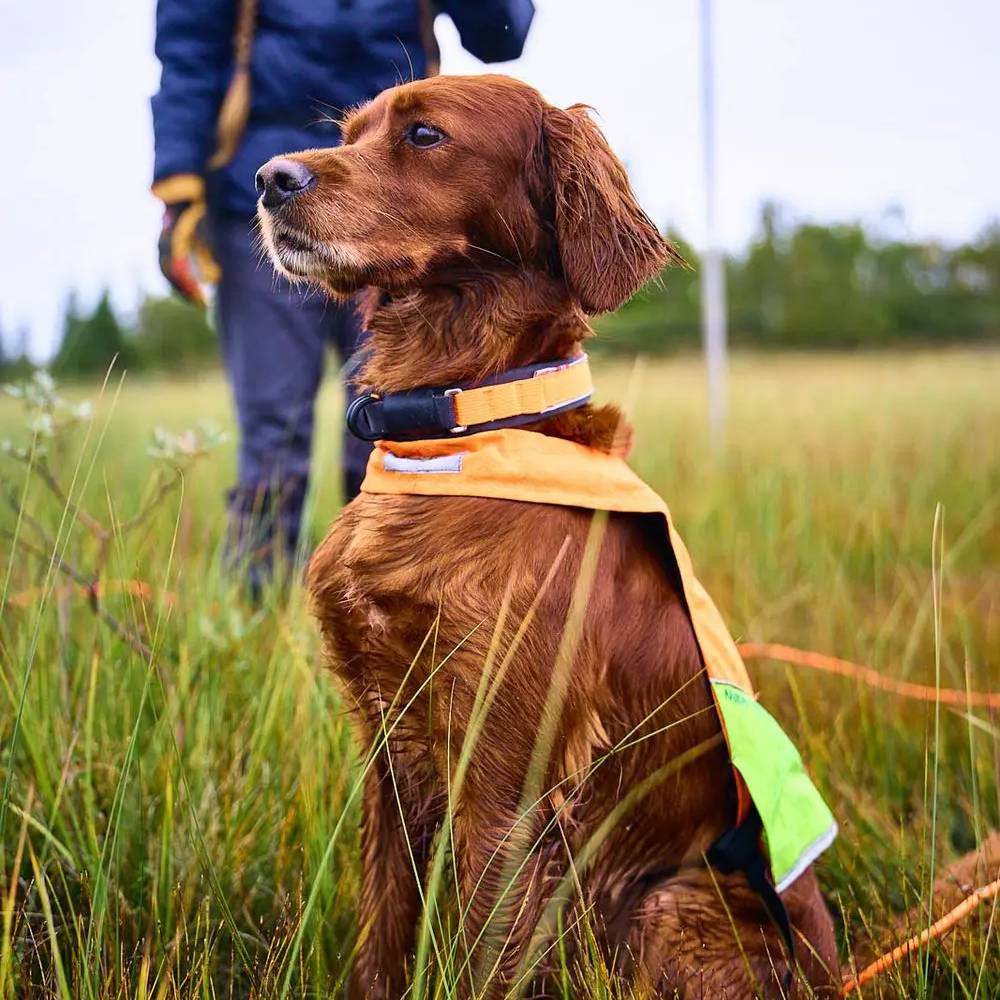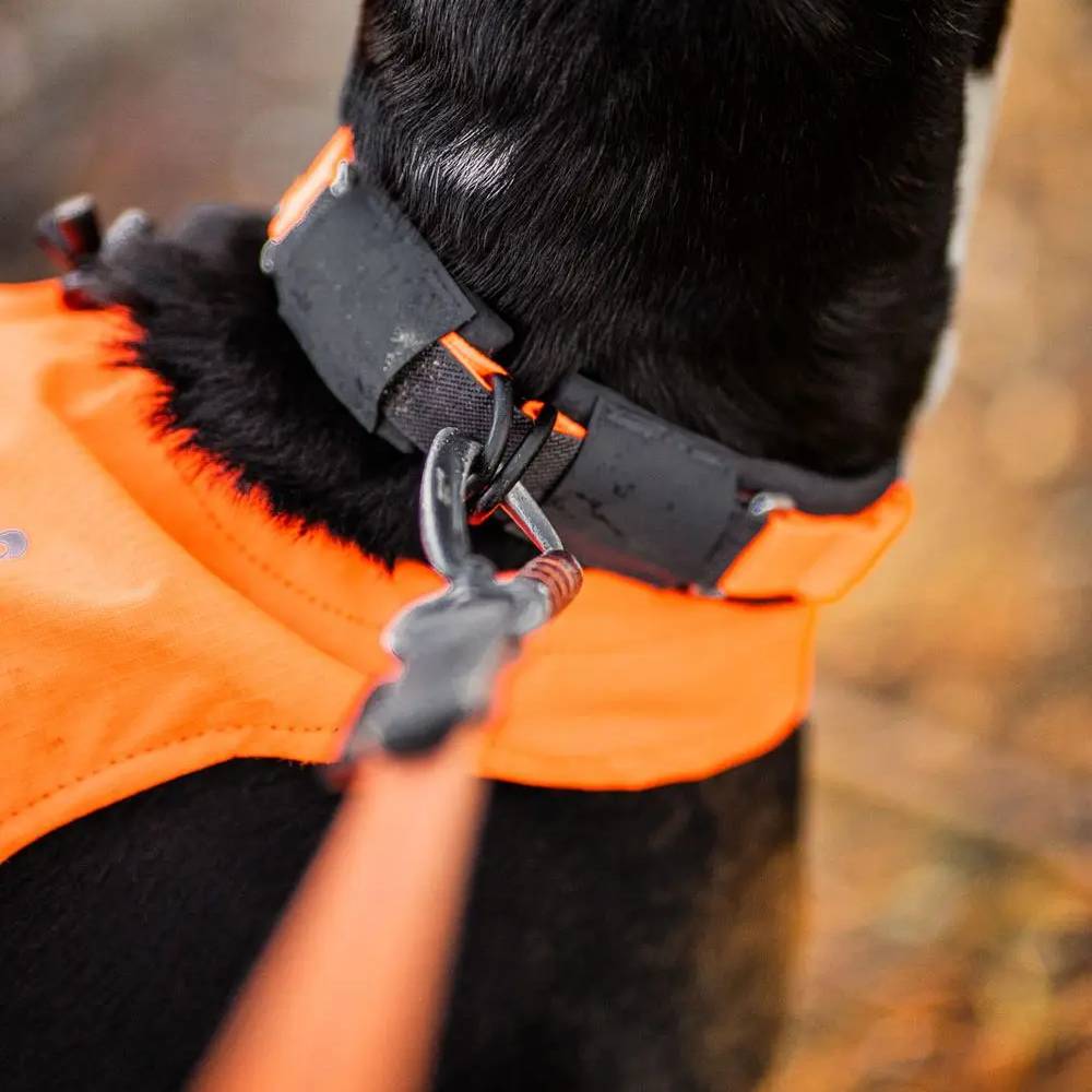 The saturated orange color, combined with dual 3M™ reflective tubes, highly enhances visibility from a distance. The collar features dual D-rings for leash attachment, locking it in place to function as a static collar.