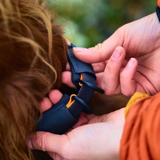 Comfort is prioritized with a soft neoprene lining that prevents chafing and fur loss.