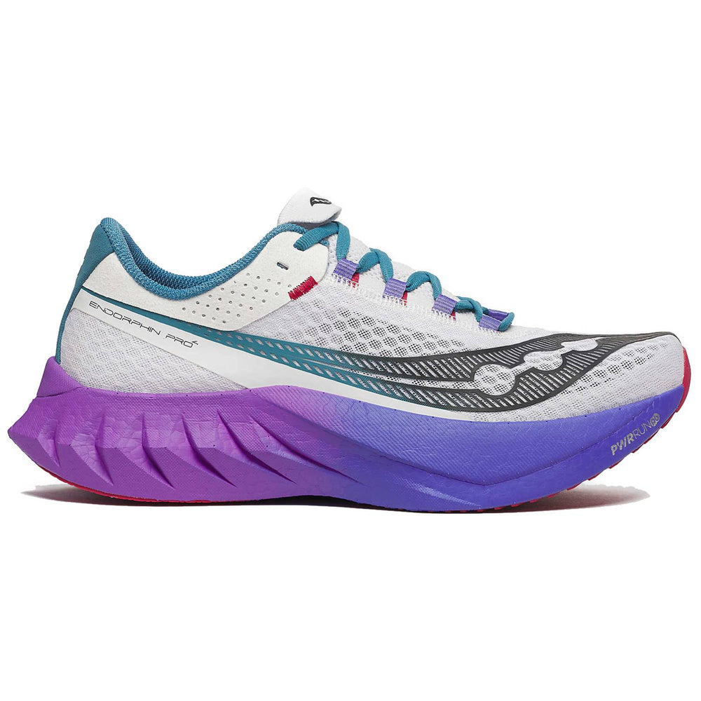 The Saucony Endorphin Pro 4 is a sleek and comfortable fast running shoe designed to give runners an edge during training and racing. Running fast times at distances up to the marathon is easy with the Endorphin Pro, which is also good for long endurance runs at a higher pace.