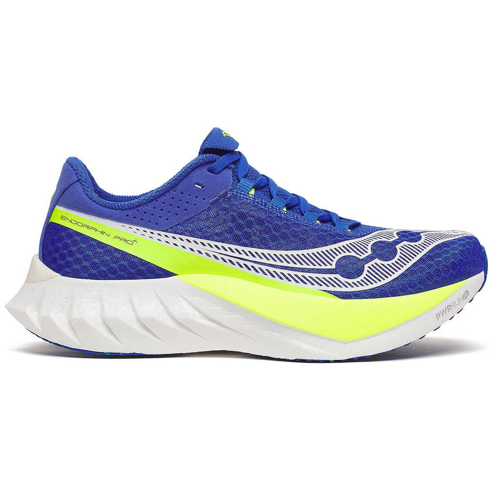 The Saucony Endorphin Pro 4 is a sleek and comfortable fast running shoe designed to give runners an edge during training and racing. Running fast times at distances up to the marathon is easy with the Endorphin Pro, which is also good for long endurance runs at a higher pace.
