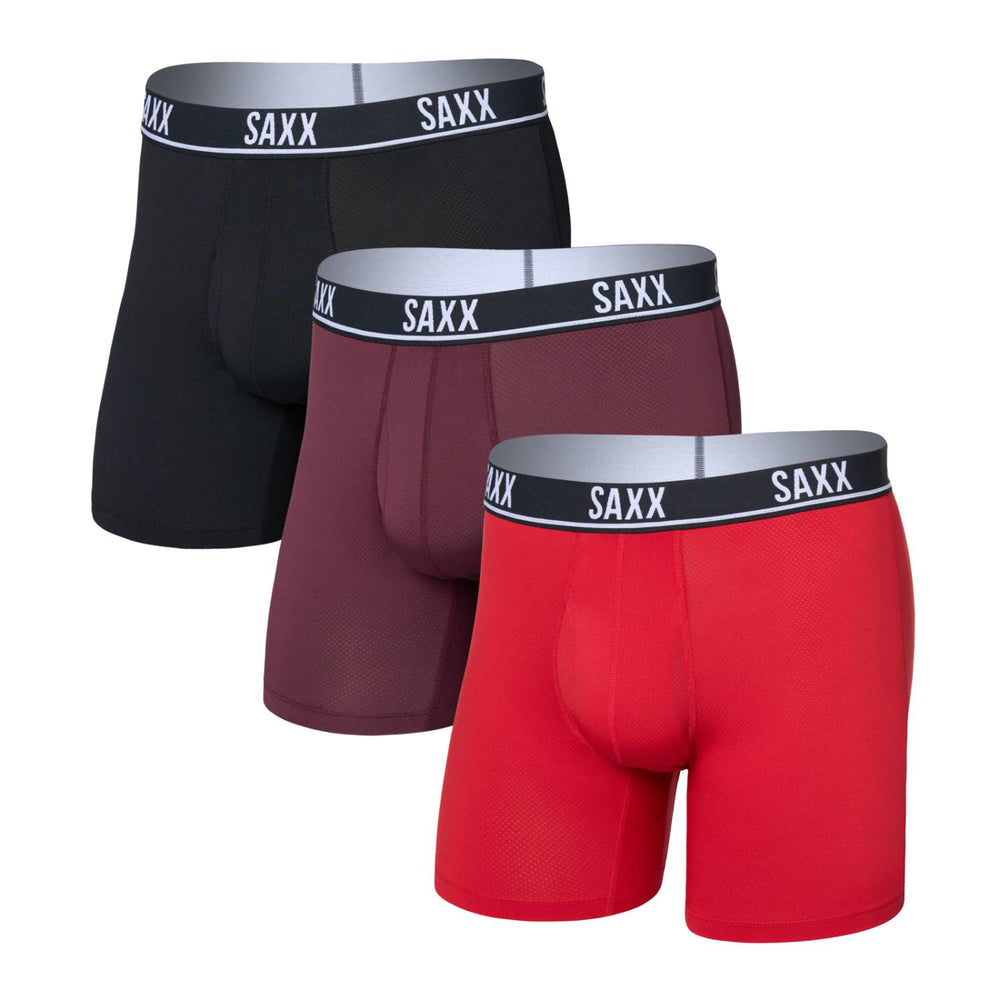 Saxx Essential Performance 3-Pack Mesh Boxer Briefs, Classic Red/Maroon/Black