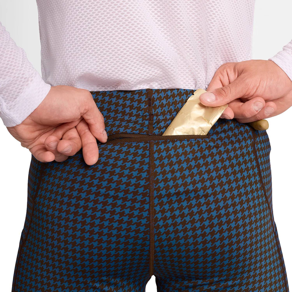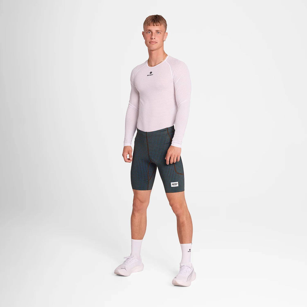 The SAYSKY Houndstooth Combat+ Short Tights 9" is a pair of short men's running tights made from recycled polyester. They come in the color black with a woven SAYSKY logo on the side and on the waist. The short tights also feature side pockets and a back pocket. The fit is slim with a regular waist. This particular model is very good for the transitional seasons as an alternative to long tights.